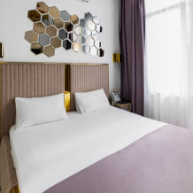 Комфортный однокомнатный номер с одной двуспальной кроватью, раскладным креслом и балконом.