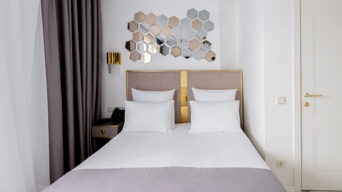 Уютный однокомнатный номер с одной двуспальной кроватью.