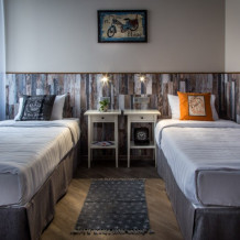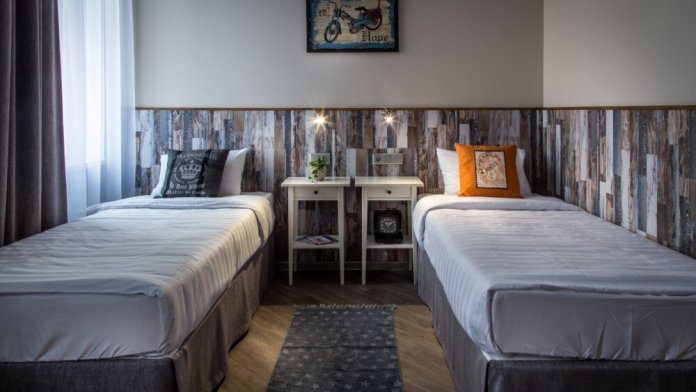 Комфортные кровати с ортопедическим матрасом с возможностью установки дополнительного спального места или детской колыбели, большой вместительный шкаф, рабочая зона с удобным столом и розетками с usb разъёмами, телевизор с большим выбором телеканалов, мини бар, чайник с набором чайной посуды, в ванной комнате просторная душевая кабина, фен, а так же полный комплект банных принадлежностей и средствами личной гигиены. Комнаты находящиеся на солнечной стороне оснащены кондиционерами.