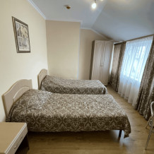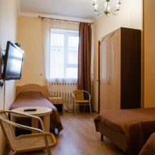 В номере удобные две односпальных кровати, стол, шкаф, прикроватная тумба, ЖК-телевизор, кондиционер, ванная комната и бесплатные туалетно-косметические принадлежности.