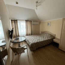 В номере удобная двухспальная кровать, стол, холодильник, фен, ЖК-телевизор, кондиционер, сушилка для белья, ванная комната и бесплатные туалетно-косметические принадлежности. Так же для вашего удобства предоставляются тапочки, халат.