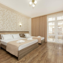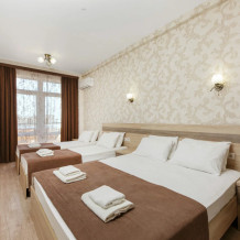 Кроме удобного расположения, мы предоставляем отдыхающим и комфортабельное проживание. В отеле есть все для этого необходимое. Бесплатный Wi-Fi и удобная индивидуальная парковка на территории отеля. Собственный бассейн с пресной водой, с подогревом. Так же в нем предусмотрено специальное отделение для детей. Рядом с бассейном открытая терраса для отдыха и загара. Есть детская площадка и анимация. Столовые, кафе и рестораны в шаговой доступности.