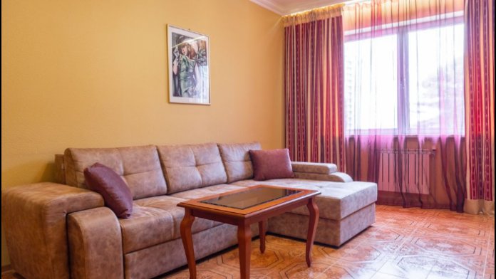 Главной особенностью квартиры является дворовая территория. Там расположен удобный диван, стол и стулья. Можно провести время на свежем воздухе, почитать или поиграть в игры с друзьями, семьей.