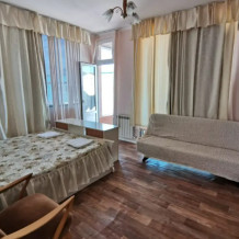 Питание: для тех, кто предпочитает готовить самостоятельно, есть полноценная оборудованная кухня, либо есть столовая поблизости. Двор благоустроен, растет много зелени, на мансарде зона отдыха, оборудованная столами и стульями. Для детей есть детская площадка и бассейн. Машину можно поставить рядом на парковке. Столовая, магазины вся инфраструктура рядом, а также экскурсии и пляжные принадлежности.