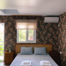 Номер с отдельным входом и всеми удобствами. С балконом. Отлично подойдет для большой семьи до 5 человек. В номере 2 спальная кровать и раскладной 2 местный диван и детское доп. место (кресло-кровать до 9 лет), душ, туалет, телевизор, холодильник, шкаф, тумбы, кондиционер, WI-FI. Доп. место входит в стоимость.