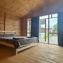 На закрытой территории 5 просторных деревянных домика с личной террасой, они рассчитаны на размещение до 4-х человек. И 3 комфортных номера с балконом расположенных на втором этаже нового корпуса, рассчитаны на размещение до 3-х человек. С территории открывается естественный природный вид на Кавказские горы.