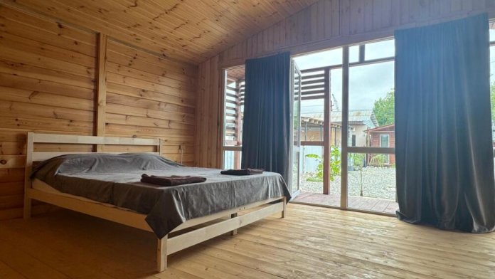 В домиках: двуспальная и двухъярусная кровати. Оснащены всем для комфортного проживания.