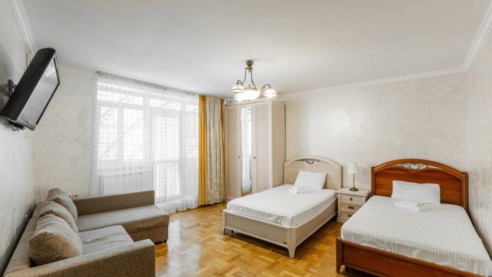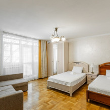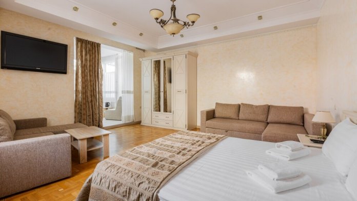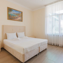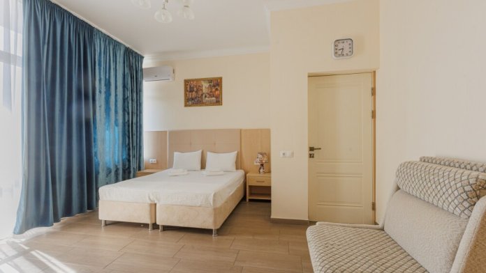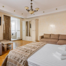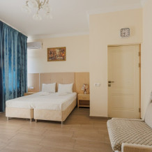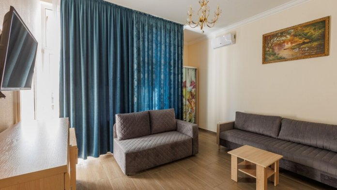 Номера данной категории имеют две комнаты, В одной комнате расположена двуспальная кровать, а в другой – два комфортабельных дивана-кровати.