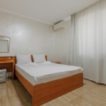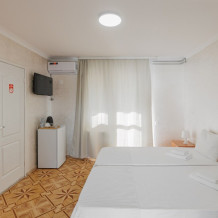 Двуспальная кровать или две односпальные кровати и кресло обеспечат вам отличный сон и отдых после активного дня. А кондиционер, холодильник, ЖК телевизор и собственный санузел с душем обеспечат ваше удобство.