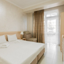 Номера данной категории расположены в новом корпусе отеля. Двуспальная кровать или две односпальные кровати и кресло обеспечат вам отличный сон и отдых после активного дня. А кондиционер, холодильник, ЖК телевизор и собственный санузел с душем обеспечат ваше удобство.
