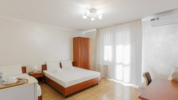 Двуспальная кровать, односпальная кровать и удобное кресло-кровать обеспечат вам отличный сон и отдых после активного дня. А кондиционер, холодильник, ЖК телевизор и собственный санузел с душем обеспечат ваше удобство.