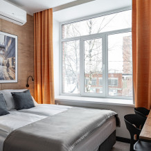 Номер площадью 18 м2. с 1 двуспальной кроватью 160*200 см. или 2 односпальными кроватями 80*200 см. Вместимость номера - 4 гостя.