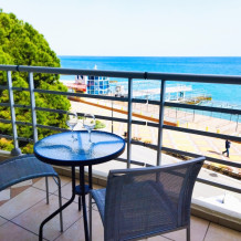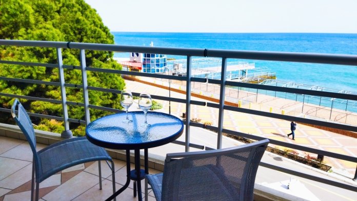 Предлагаем отдохнуть в отеле «Аквапарк» в комфортных апартаментах с панорамным остеклением. На открытом балкончике с чудесными видами на Черное море, сидя в удобных креслах, Вы можете утром наслаждаться горячим кофе, а вечером встречать закаты с холодным Крымским Шампанским!