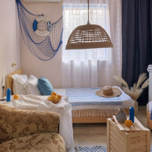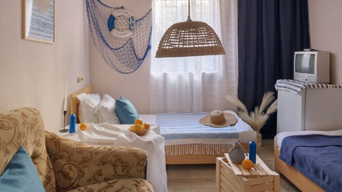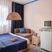Комфортные номера со всеми удобствами. Включают в себя спальные места (раскладной диван и односпальные кровати), холодильник, телевизор, кондиционер, с/у в номере, шкаф, небольшой столик и тумбочка, зеркало.