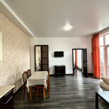 Прекрасно подходит для большой семьи с маленькими детьми на долгий период. Состоит из 2 комнат: спальня и просторня гостиная. В номере кондиционер, телевизор, холодильник, балкон, кухонный уголок и все необходимое для вашего комфортного пребывания!