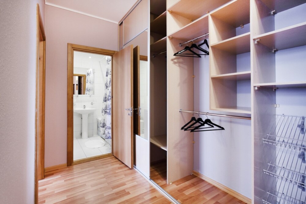 - Шкаф-купе с зеркалом и вешалками.