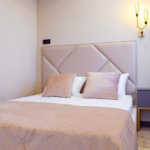 В качестве спального место здесь предусмотрена двуспальная кровать с удобным матрасом. В некоторых номерах этой категории спальные места могут быть раздельными (две односпальные кровати). Укомплектованы также всей необходимой техникой и мебелью. Кухонный блок с варочной панелью и вытяжкой, обеденная зона со столом и мягкими стульями, холодильник с морозильной камерой, чайник, комплект посуды и столовых приборов. Санузел с душевой кабиной, стиральная машина, полотенцесушитель, фен, утюг и гладильная доска.