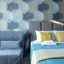 Уютный трехместный номер с балконом оборудован индивидуальной системой климат контроля, диваном - кроватью, двуспальной кроватью с ортопедическим матрасом и мягким изголовьем, что позволит полноценно отдохнуть после активного дня. Для тех, кто совмещает отдых с работой организовано рабочее место. В номере новый шкаф для одежды, прикроватные тумбы, пуф, телевизор с плоским экраном и спутниковым TV, холодильник. В Вашем распоряжении ванная комната с душевой кабиной.