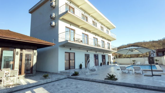 Гостевой дом «SunMania» 2023 года постройки, выгодно отличается от «типичных» курортных вариантов. Это современное здание, в котором 12 уютных и просторных номеров категории «комфорт» с балконами.