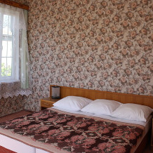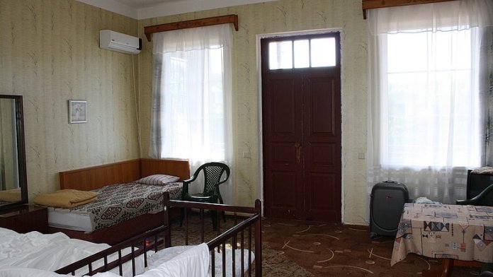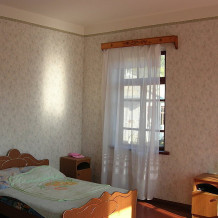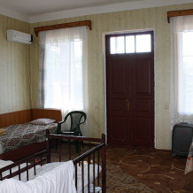 Сдается второй этаж 2-этажного кирпичного дома (комнаты: 26, 18, 18 м кв. с лоджиями 10, 15 м кв., кухня с холодильником с выходом на балкон, большая летняя кухня на первом этаже). Все удобства, холодная, горячая вода круглосуточно, кондиционеры, спутниковое телевидение, Wi-Fi. Колодезная питьевая вода, мангал, два велосипеда. Парковка на территории участка. Огромный виноградник-шалаш, гамаки (вино, чача). Своя пасека.