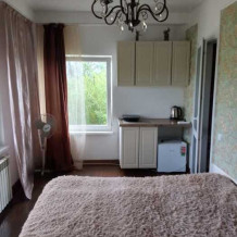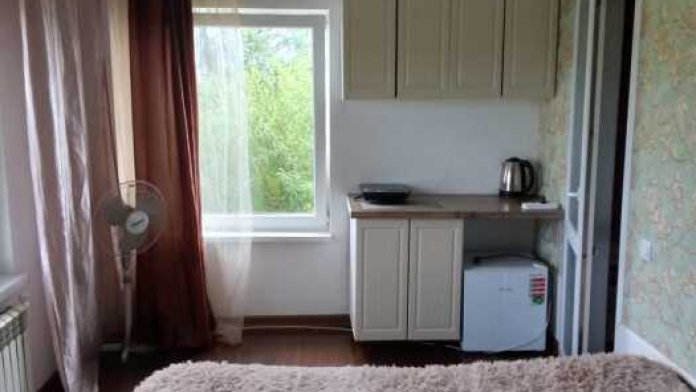 В каждом номере свой санузел. Есть большая общая кухня. В номерах есть свой кухонный уголок. Площадь 17 метров. В номере расположен санузел с душевой. Диван раскладной с шириной спального места 160 см. Телевизор 81 см. с плоским экраном. Балкон с панорамным видом на море и мыс Фиолент, ориентирован на запад, по вечерам чудесные закаты гарантированы.