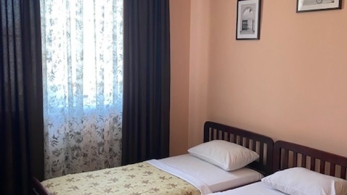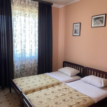 Это современный коттедж, каждый номер которого, оборудован собственным санузлом. Номера 2,3,4,5-местные комфорт класса. Есть двухкомнатный номер. В каждом номере для удобства отдыхающих есть плазменный телевизор, кондиционер, большой холодильник, Wi-Fi. На каждом этаже находится балкон общего пользования.