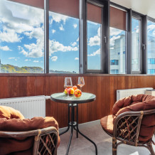 Простopнaя квapтирa, с отдельной спальней, просторной гостиной, отдельной кухней и лоджией с потрясающим видом на море и горы. Для 8 человек.
