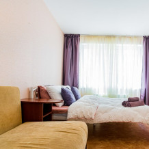 - А также: постельное белье, полотенца, ванные принадлежности, кофе, чай, микроволновая печь, фен.