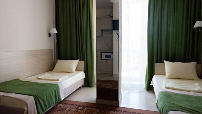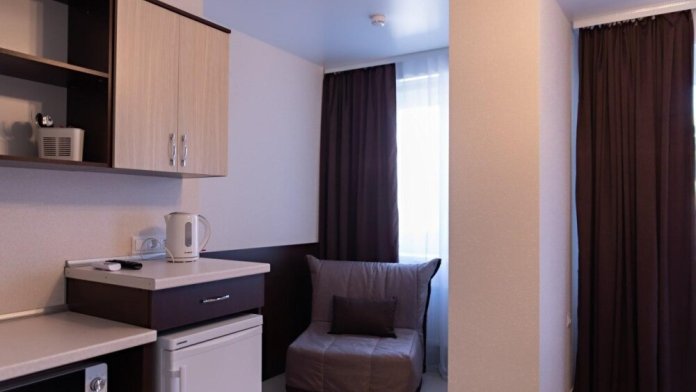 В наличии различные виды номеров: номера-студио, одноместные, двухместные, семейные номера. Номера оснащены холодильником, электрической и микроволновой печами, чайником и всей необходимой посудой. В каждом номере отдельный санузел, туалетные принадлежности входят в стоимость проживания, в номере имеется телевизор и городской телефон, очень удобные кровати, шкаф и письменный стол, Вы сможете отдохнуть и, если нужно, поработать, будете чувствовать себя, как дома. Wi-Fi и парковка предоставляются бесплатно.