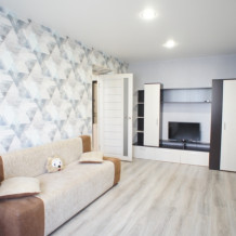 Спальня 11 м2: Двуспальная кровать, шкаф для одежды, тумбочка, кондиционер. Комната 15 м2: Угловой двуспальный диван, шкаф стенка под тв, журнальный столик, тв. Остекление в квартире пластиковое. Прихожка 3м2: Комод, зеркало, вешалки и крючки для одежды, встроенный шкаф-купе. Санузел совмещеный: Ванна, умывальник, зеркало, туалет.