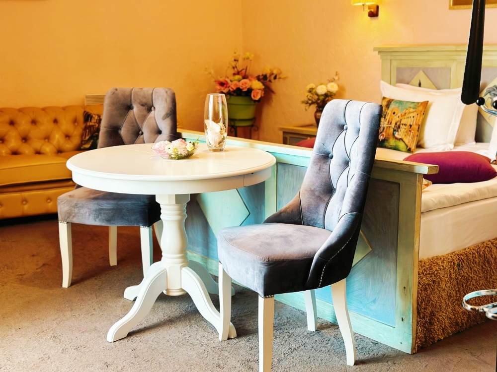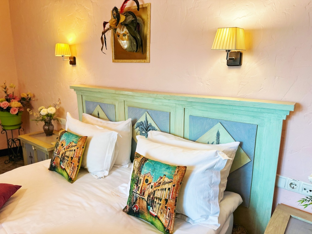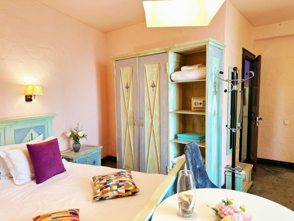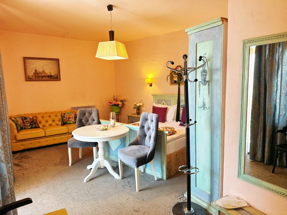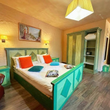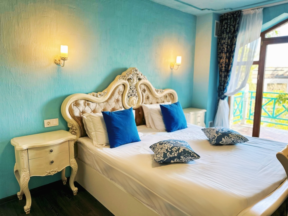 Великолепные номера, оформлены каждый в своем неповторимом стиле и обставлены качественной современной техникой и удобной мебелью. Заселяясь в номер, гости окунаются в волшебный мир красок и роскоши.