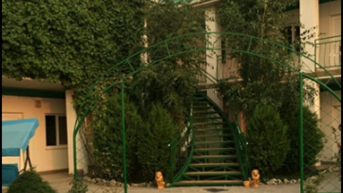 Территория гостевого дома закрыта для посторонних. Внутренний двор радует глаз свежим зеленым газоном, яркими цветочными клумбами. Каждый гость сможет найти себе уголок по душе: устроить посиделки на уютных качелях с навесом, поиграть в настольный теннис на свежем воздухе, организовать шашлыки с друзьями, уединиться в беседке под тихую музыку. Для малышей есть детская площадка и игровая комната с игрушками и настольными играми.