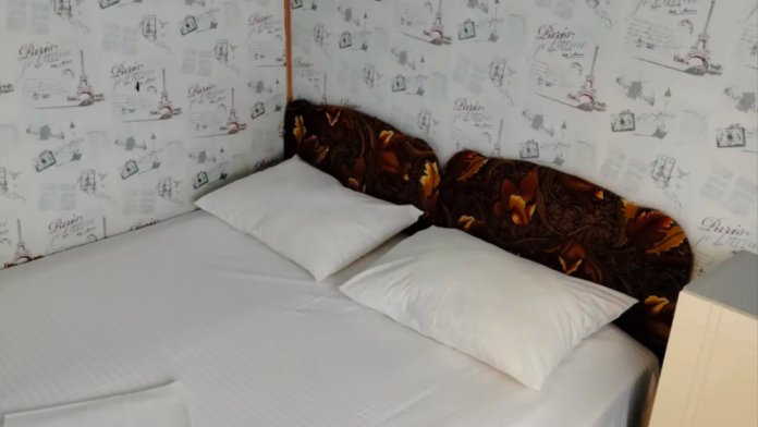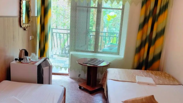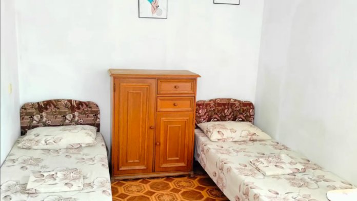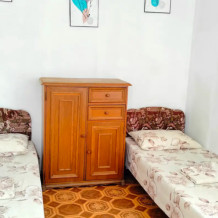 На втором этаже, балкон общий, душ и туалет на первом этаже. В номере есть вентилятор.