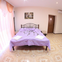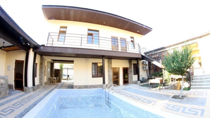 Во дворе отдельная кухня, мангальная зона и бассейн. В каждом номере свой отдельный санузел с душем, телевизором, кондиционером и холодильником. Бесплатный интернет Wi-Fi, трансфер. Пляж и центральная набережная расположены в 800 метрах от гостевого дома.