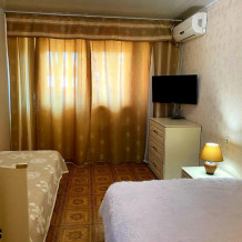 В шаговой доступности магазины, кафе, аттракционы, остановка общественного транспорта (автобус №114 ходит каждые 5 минут до любого пляжа поселка, в дороге 5-8 минут), море и барханные пляжи.