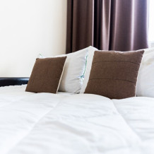 - А также: постельное белье, полотенца, утюг, ванные принадлежности, кофе, чай, микроволновая печь, фен.