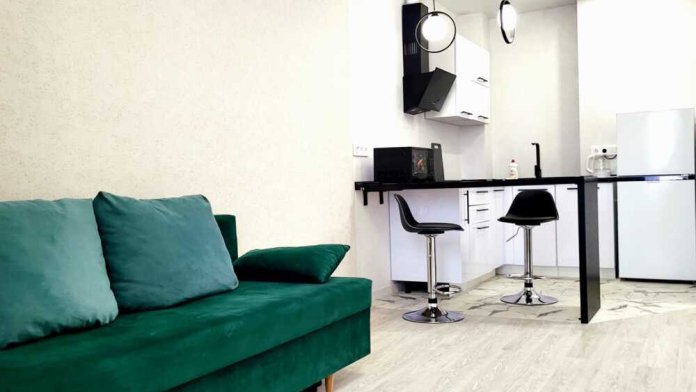 Квартира находится на 4 этаже 26 этажного жилого дома. Внутри квартира оборудована всем необходимым для комфортного проживания. Здесь есть уютная спальня с большой кроватью, просторная гостиная с мягким диваном и телевизором, а также полностью оборудованная кухня с обеденной зоной. В ванной комнате установлена современная сантехника, есть стиральная машина.