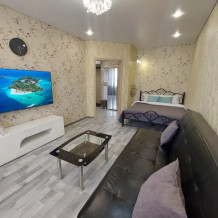 В квартире есть всё необходимое для комфортного проживания: мебель и бытовая техника, постельное бельё, полотенца, вся посуда, эл. чайник, фен, утюг, гладильная доска. Укомплектована: холодильник, кондиционер, стиральная машина, водонагреватель, эл. варочная панель, микроволновка, 2 телевизора (50 и 40 дюймов) с выходом в интернет, кабельное многоканальное телевидение, интернет WI-FI, кровать с ортопедическим матрацем (160*200), диван (140*200).
