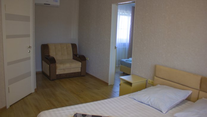 В гостевом доме полноценные, закрытые номера со всей необходимой, исправной мебелью и техникой, все номера закрываются на ключ, ловит бесплатный Wi-Fi, а к телевизорам подключено спутниковое ТВ с множеством детских и спортивных каналов.