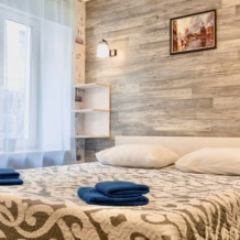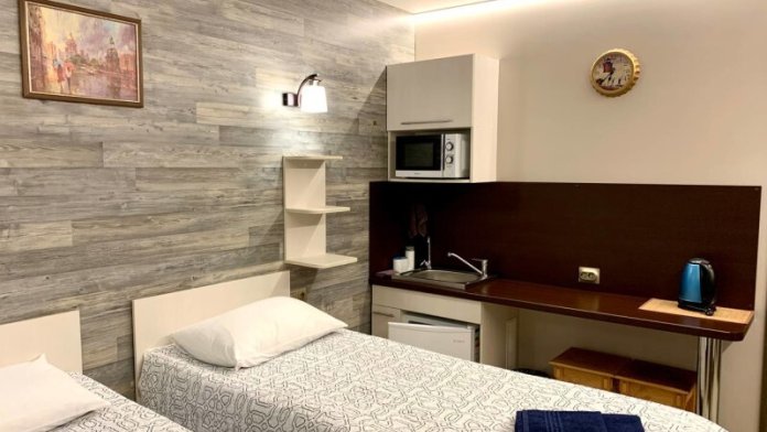 В каждом номере в Вашем распоряжении мини-кухня, оснащенная всем необходимым: набором посуды и столовых приборов, электрочайником, холодильником и микроволновой печью, а также собственная ванная комната с подогревом пола, душем, феном, косметическим зеркалом и туалетными принадлежностями.