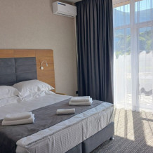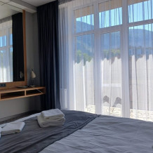 Пребывание в данном номере позволит Вам насладиться уединением и спокойствием, которые так важны для полноценного отдыха. Интерьер, выполненный в европейском стиле, создаст атмосферу уюта и расслабления, в номере есть все необходимое для комфортного проживания, фен, чайник, холодильник, шкаф для одежды. Просыпаясь каждое утро, Вы будете радоваться виду из окна на береговую зону и горы с их красивым ландшафтом.