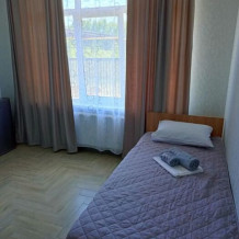 Номера расположены на 2-3 этажах, всего 8 номеров: 2-местные, 3-местные, 4-местные. Номера с постельным бельем х/б страйп-сатин, полотенца банные и лицевые. Кухни находятся на каждом этаже (на 4 номера). Все номера оснащены: кровати бокс-спринг, прикроватные тумбочки, ТВ, холодильник, стол, стулья, шкаф, кондиционер, шторы блэкаут, зеркало, посуда индивидуальная. В ванных комнатах: душевая кабина, гигиенический душ, фен, туалетные принадлежности. Во всех номерах имеется балкон со столиком, стульями, сушилкой для белья. 4х-местный номер с двухъярусной кроватью.