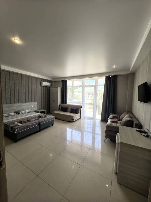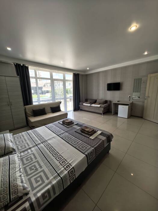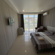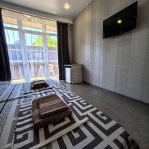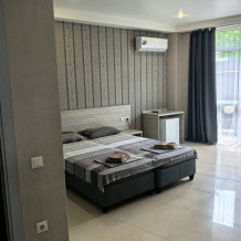 Номера современного дизайна, мягкая мебель, индивидуальная система кондиционирования, спутниковое телевидение, Wi-Fi интернет, горячая и холодная вода постоянно. Светлые и просторные номера с балконами и панорамными окнами из которых открывается прекрасный вид на окрестности и чарующие Кавказские горы, можно наблюдать восход и закат солнца.
