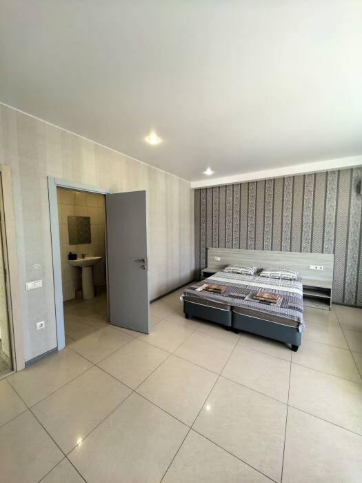 Территория просторная, позволяет прекрасно разместиться всем гостям. Оборудованная кухня для самостоятельного приготовления пищи. Летние столики под открытым небом для уютных посиделок. Мангальная зона оснащенная всем необходимым, бассейн и шезлонги в Вашем распоряжении. Имеется парковка у дома для гостей на личном авто.