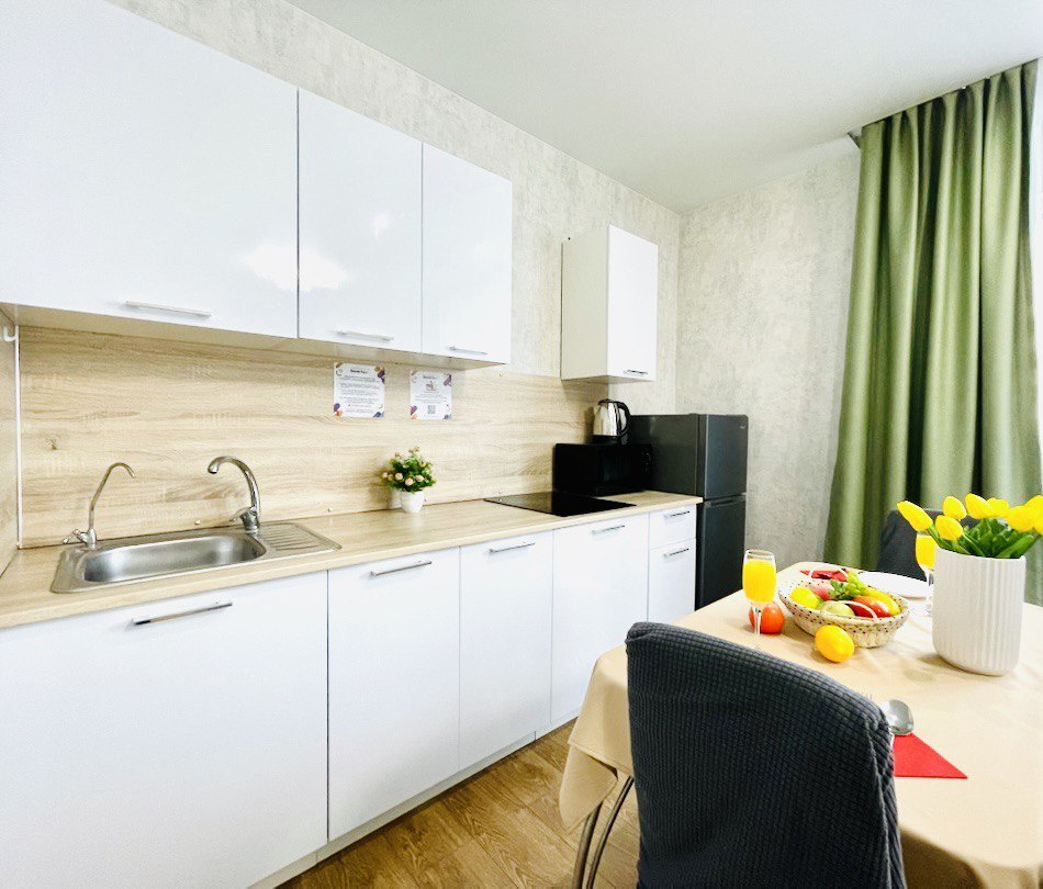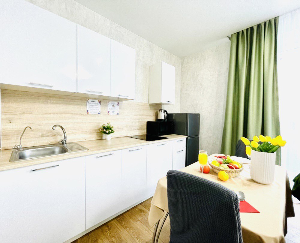 В апартаментах есть вся необходимая техника и мебель, Wi-Fi, постельное белье, полотенца и посуда, все то, что необходимо для комфортной жизни гостей и обусловлено своей функциональностью: для бизнес-путешественников с деловым визитом, в командировку; для семейных пар и с детьми, или просто провести романтический вечер.
