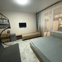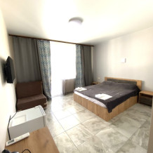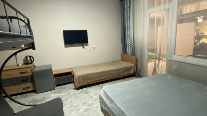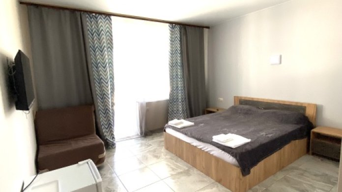 Предлагаем нашим гостям просторные и комфортные номера (двух и трехместные номера категории стандарт и улучшенный). Для гостей в каждом номере имеется двуспальная кровать с прикроватными тумбами, ванная комната, TV, WI-FI, гардероб, комод, а также кондиционер, фен, холодильник и электрический чайник. Для 3 гостя в трехместных номерах установлен раскладной диван.