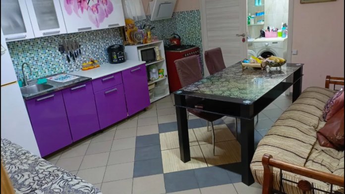 Отдельный вход, две комнаты, санузел. Во второй комнате двухъярусная кровать для детей.