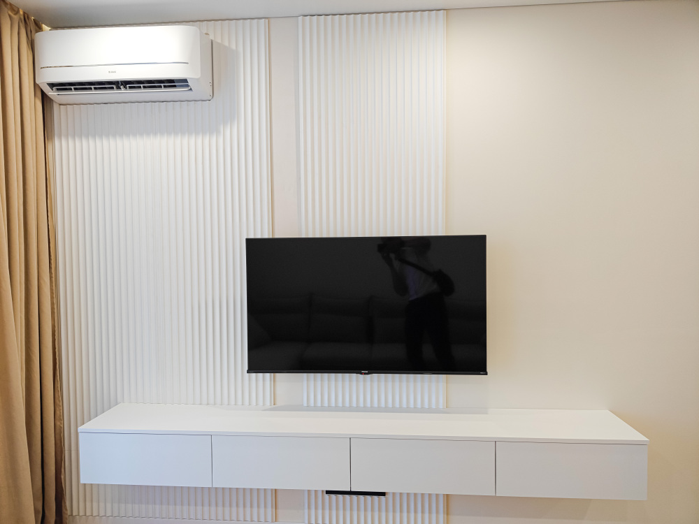 В номере: одна двуспальная кровать и большой раскладной диван, кухня, кухонные принадлежности, микроволновая печь, чайная стация, обеденный стол, холодильник, стиральная машина, ТВ, сплит-система, телефон, сейф, шкаф, балкон с летней мебелью и сушилкой для белья.