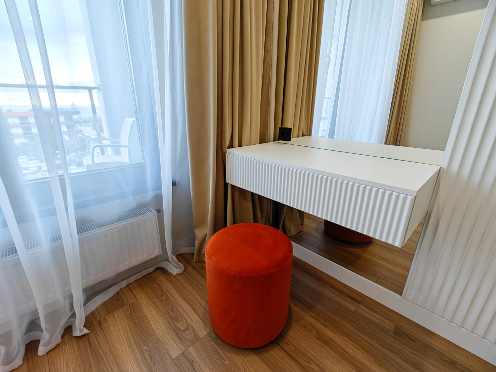 Уютные и просторные двухкомнатные апартаменты со всеми удобствами и видом на море, идеально подходят для отдыха семейной пары и компании друзей. Комфортное размещение двоих Гостей на основных местах, двоих Гостей на дополнительных местах и одного ребенка до 5 лет включительно без дополнительного места бесплатно. Номера расположены на 1,3,4 и 6 этажах.