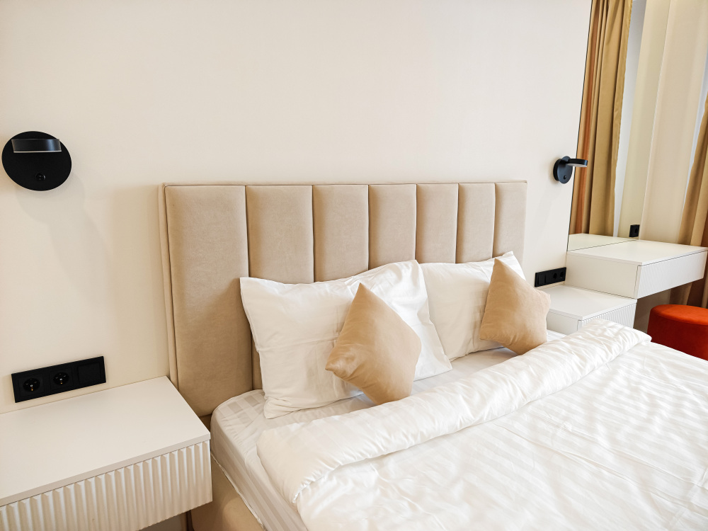 Уютный однокомнатный номер увеличенной площади с балконом для размещения двоих Гостей на основных местах, двоих Гостей на дополнительных местах и одного ребенка до 5 лет включительно без дополнительного места бесплатно.